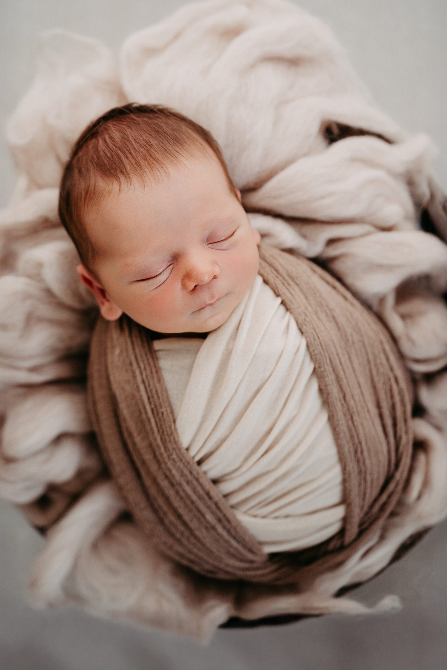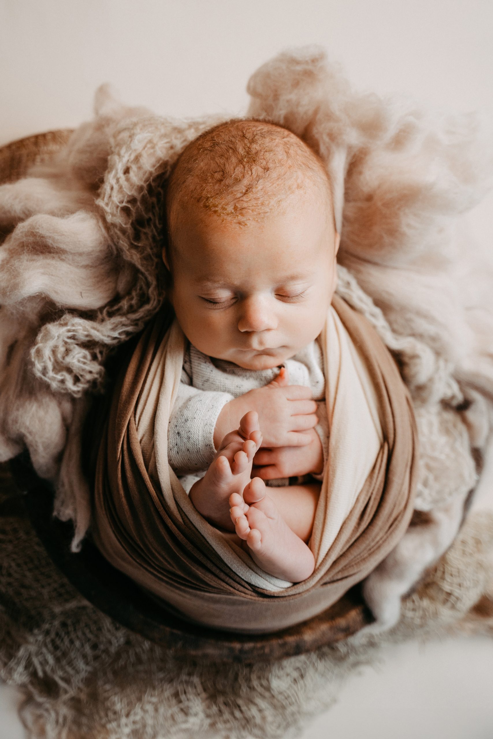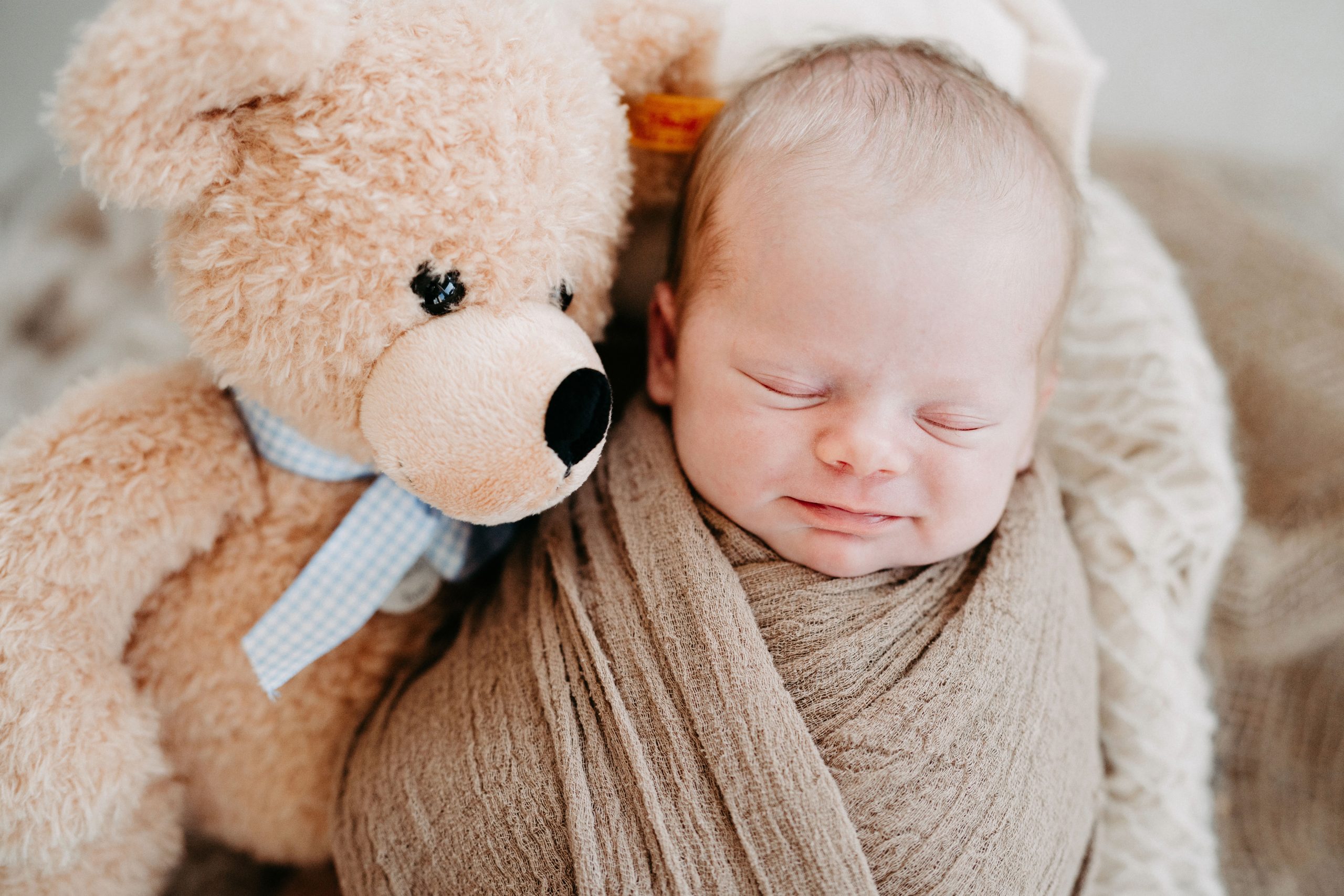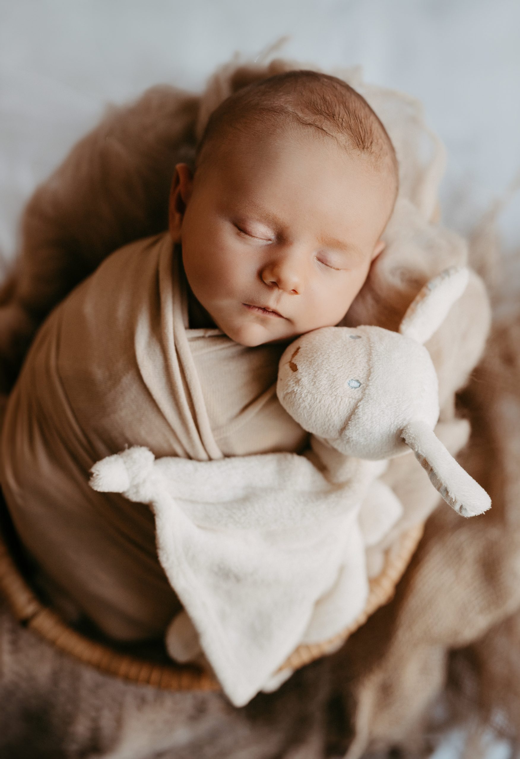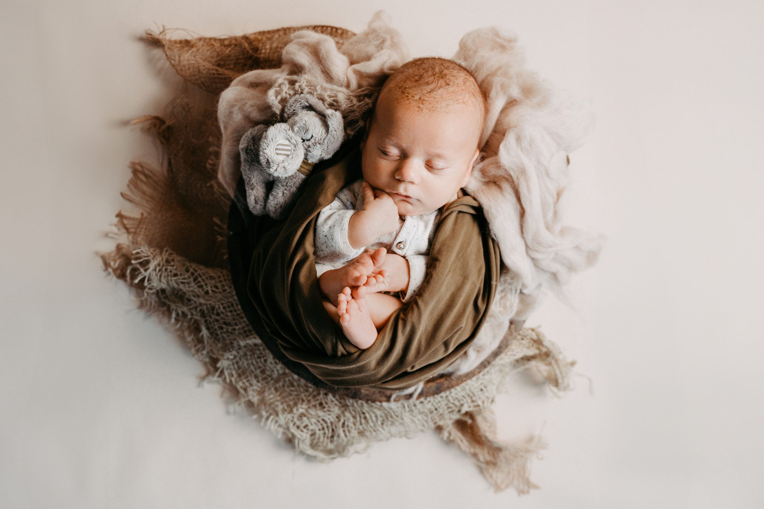 Plant euch für das Shooting etwa 2–3 Stunden ein. Je nach Gegebenheiten sind wir schneller fertig oder brauchen etwas länger — ihr könnt euch aber sicher sein, dass ihr nicht “abliefern müsst” und wir ohne zeitlichen Druck zu euch kommen. Das Wichtigste bei uns immer: Baby first. Wenn ihr entspannt seid, ist es euer Baby auch. Wir arbeiten ohne Zeitdruck und machen, wenn nötig, jederzeit Pausen — zum Stillen, für die Flasche oder zum Wickeln.
