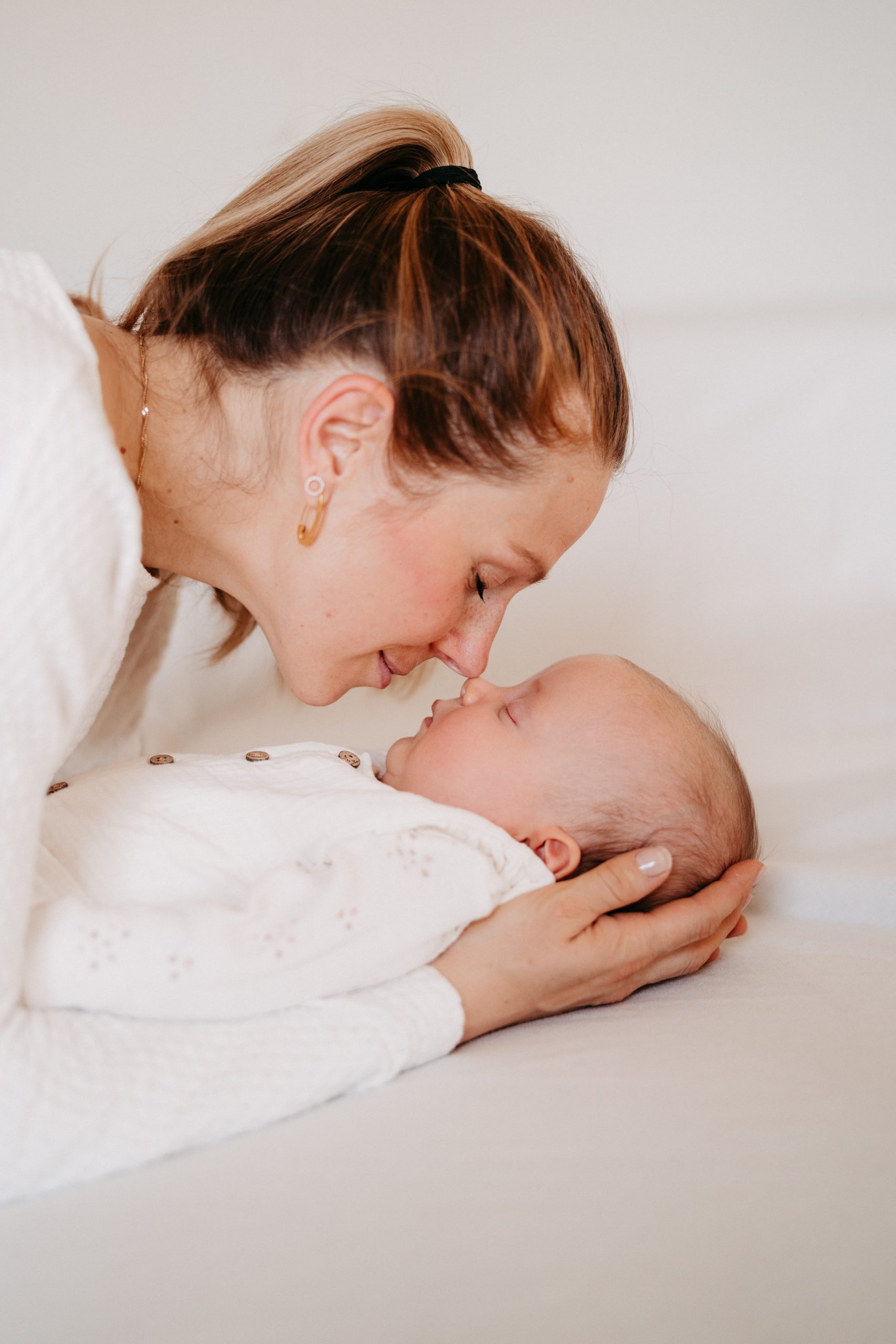 Beides ist möglich. In unserem studio mood. erwartet euch eine ruhige, vorbereitete Umgebung mit ausgewählten Accessoires und schönem Licht. Homeshootings haben den Vorteil der vertrauten Umgebung – alles ist griffbereit und besonders mit kleinen Kindern oder Neugeborenen oft entspannter. Gemeinsam finden wir heraus, was besser zu euch passt.